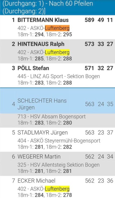Herzliche Gratulation an Klaus Bittermann zum 1.Rang , Ralph Hintenaus zum 2.Rang und Michael Ecker zum 7. Rang beim Schwarzenberg Indoor-Turnier am 04.01.2025
