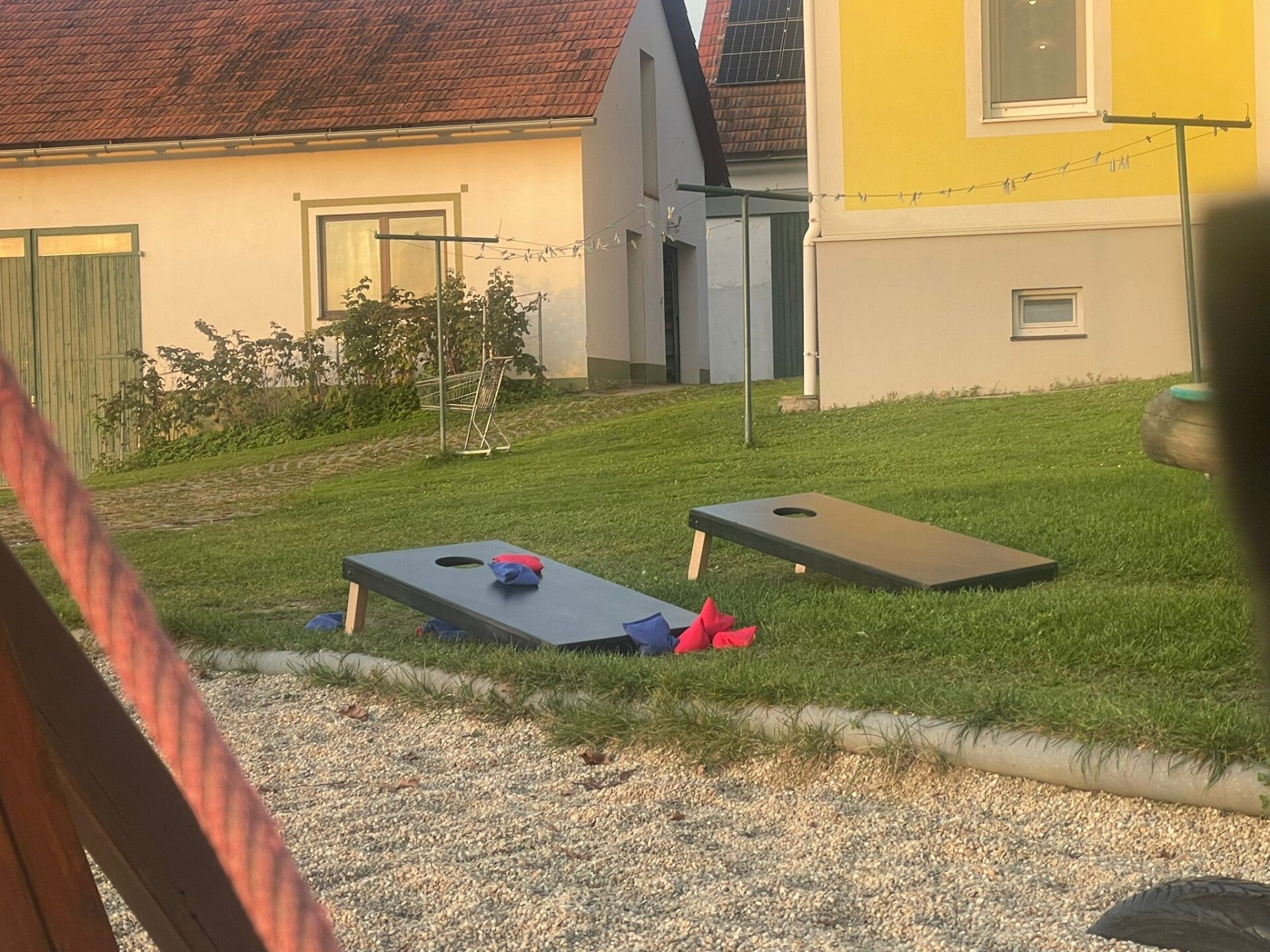Anschließend gabs in der Bergschenke Schlögl eine stärkende Jause mit Schilchersturm bevor der ASKÖ-Luftenberg Untersektion Cornhole sich packende Duelle lieferte – bis zum Sonnenuntergang…